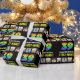 Este design de papel empacotado com temas de aniversário divertidos e ousados apresenta um grande número de "39", tendo um espectro de arco-íris vibrante inspirado em um padrão de gradiente, além da mensagem "Feliz 39º Aniversário", e um nome de destinatário personalizável. Há também fotos que podem ser personalizadas, talvez com fotos do receptor, da família e dos amigos do destinatário e/ou do(s) remetente(s) do presente. Um papel de embrulho como este pode ser usado para dar um presente ou presente em homenagem ao trigésimo nono aniversário de alguém. (Fotografia © Storytree Studios, Stanford, CA.) [~Z0000670]