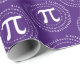 Este papel de embrulho de presente Pi Day roxo e branco apresenta um número Pi espiral 3.14 e um padrão de símbolo Pi. A cor de fundo é fácil de personalizar a dentro da ferramenta design.