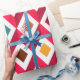 This wrapping paper has a mid-century modern design of cubes in retro colors.