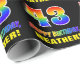 Este design de papel empacotado alegre, divertido e colorido no tema do aniversário apresenta um grande número "43" e a mensagem "FELIZ ANIVERSÁRIO", ambos tendo um gradiente do espectro do arco-íris inspirado na coloração do padrão, juntamente com um nome ousado de destinatário personalizado amarelo. O fundo é preto colorido. Papel de embrulho divertido como este pode ser usado ao embrulhar presentes que estão sendo dados a alguém em comemoração do seu 43º aniversário. [~Z0000475]