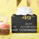 Este luxuoso e elegante design de papel de embrulho com tema de aniversário apresenta a mensagem "FELIZ 46º ANIVERSÁRIO", um nome editável, e o número de aniversário "46º" com um padrão de aparência inspirado em ouro falso/imitado. O fundo é preto colorido. Um papel de embrulho como este pode ser usado no empacotamento de presentes ou presentes que estão sendo dados em comemoração do 46º aniversário de alguém. [~Z0000454]