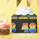 Este design de papel empacotado colorido, divertido e alegre no aniversário apresenta um grande número de "48" e a mensagem "FELIZ ANIVERSÁRIO", ambos tendo um gradiente do espectro do arco-íris inspirado na coloração do padrão, juntamente com um nome ousado de destinatário personalizável amarelo. O fundo é preto colorido. O tema do aniversário divertido embrulhar papel como este pode ser usado para embrulhar um presente ou presente para alguém que comemora seu 48º aniversário. [~Z0000475]
