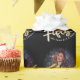 50 textos de script de cor dourada em papel embrulho de aniversário preto. Personalize este pacote de 50 anos com sua própria foto de seu aniversariante ou garoto e uma mensagem e/ou nome, lê atualmente cinquenta e fabulosa Chantelle! Estão disponíveis outros anos e itens correspondentes. © Original design por Sarah Trett para www.mylittleeden.com no Zazzle.