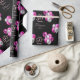 Este papel personalizado de empacotamento de presentes apresenta um tema fabuloso de 50 anos. Os balões de prata e de brilho cor-de-rosa são colocados em ambos os lados do texto. Uma saudação de "Parabéns" é seguida de um nome de exemplo que é impresso em uma letra de script elegante. O quinquagésimo ano é impresso num design cor-de-rosa com brilho. Você pode personalizar as placas para incluir seu próprio nome personalizado ou outro texto. Uma bela banda de diamantes é impressa abaixo do nome do convidado de honra.