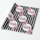 Papel De Presente 50.º aniversário rosas rosa-chic, listras brancas