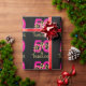 Bold 50 and Fabulous 50th birthday wrapping paper with gold and pink typography against a black background. Ideal for glam birthday celebrations.