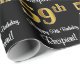 Este na moda, sofisticado e elegante design de papel de embrulho de aniversário apresenta um grande número ordinal "59º" com um padrão de gradiente tipo "faux"/imitação dourado, além da mensagem de saudação de aniversário "Feliz 59º Aniversário" e um nome de destinatário editável em uma fonte estilo script. O fundo é preto colorido. O sofisticado papel de embrulho temático de aniversário como este pode ser uma maneira divertida de embrulhar um presente ou presente para alguém que comemora seu cinquenta nono aniversário. [~Z0000515]