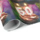 bolo de aniversário com velas embrulhando papel. As velas são compostas pelo número 60, para 60 anos.