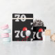 festa de aniversário 70 com negrito preto e branco feliz e texto número 70 em preto com buquê de balão de festa. A cor de fundo preta pode ser alterada.