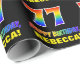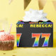 Este design de papel de embrulho de aniversário alegre, divertido e colorido apresenta um grande número "77" e a mensagem "FELIZ ANIVERSÁRIO", ambos coloridos com um padrão inspirado no gradiente do espectro do arco-íris, juntamente com um nome ousado de destinatário personalizado amarelo. O fundo é preto colorido. O tema do aniversário divertido embrulhar papel como este pode ser usado quando se dá um presente ou presente em comemoração do 77º aniversário de alguém. [~Z0000475]