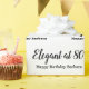 Uma design simples e chica feita em texto preto que diz "Elegante aos oitenta" e "Parabéns". O texto pode ser alterado e personalizado para ajustado das suas necessidades!