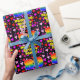 This happy and joyful birthday-themed wrapping paper design features a large number “80” with a rainbow spectrum gradient inspired pattern, along with the message “Happy 80th Birthday,”, and a personalized name. The background features a pattern of pink, purple, and red heart shapes. Personalized birthday themed wrapping paper like this might be a fun way to wrap a gift or present being given to somebody who is celebrating their eightieth birthday. [~Z0000549]