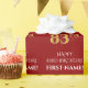 Este elegante e luxuoso design de papel embrulhado com tema de aniversário exibe a mensagem "HAPPY 83rd BIRTHDAY", um nome editável, e o número de aniversário "83rd" com um padrão de aparência inspirado em falsa/imitação de ouro. O fundo tem cor vermelha. Este tipo de papel pode ser utilizado na preparação de presentes/presentes para comemorar o 83.º aniversário de alguém. [~Z0000491]