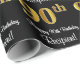 Este sofisticado, na moda, e luxuoso design de papel de empacotamento com temas de aniversário apresenta um grande número ordinal "90" com aparência de ouro falso/imitação, juntamente com a mensagem de saudação de aniversário "Feliz aniversário do 90", e um nome de destinatário editável em uma fonte estilo script. O fundo é preto colorido. O Elegante aniversario temed embrulhando papel como este pode ser usado quando se dá um presente ou presente em comemoração do nonagésimo aniversário de alguém. [~Z0000515]