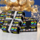 Este design de papel embrulhado com tema de aniversário divertido e atraente apresenta um grande número "92", tendo um espectro multicolorido de arco-íris inspirado em gradiente, além da mensagem "Feliz 92º Aniversário", e um nome de destinatário personalizável. Há também fotos que podem ser personalizadas, talvez com fotos do receptor, da família e dos amigos do destinatário e/ou do(s) remetente(s) do presente. Um papel de enrolar como este pode ser usado ao embrulhar presentes que estão sendo dados a alguém em comemoração de seu aniversário de noventa e dois anos. (Fotografia © Storytree Studios, Stanford, CA.) [~Z0000670]