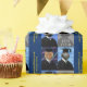 O azulejo de três macacos através do papel de envolvimento, ao lado da foto do seu formando. Use o modelo para adicionar uma mensagem curta, feita sob encomenda dos "parabéns" no amarelo.