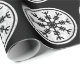 A Mão do Awe é um antigo Norse, Viking, design de símbolo para lançar o medo nos corações e mentes dos adversários. Este design de tridente de oito pontas foi ilustrado com um olhar branco angustiado, sobre um fundo preto.