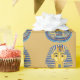 Esta design personalizável é baseada na máscara de ouro do garoto egípcio rei Tutankhamun em um fundo de ouro. A cor de fundo pode ser alterada para efeitos interessantes.