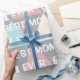 Papel de embrulho geométrico, bonito e colorido, com a frase "a melhor mãe de sempre" em texto branco. Papel de embrulho de excelente para dia de as mães!