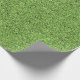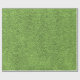 a roll of green textured wrapping paper with a grass-like pattern, curled at one corner to reveal the texture and design of the paper, set against a plain white background