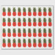 Este papel de envolvimento à moda do feriado caracteriza abacaxis vermelhos, verdes, e do falso do ouro em um fundo branco.