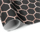 Abelhas de ouro rosa metálico e favos de mel recobrem fundo preto. Perfeito para desacoplar arte, embrulhamento de presente ou artesanatos de papel.