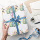 Papel De Presente Abóbora azul queda floral aquarela outono elegante