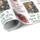 Papel de embrulhamento de fotos de Natal com 2 de suas fotos favoritas. O design é escrito com "Não abrir até 25 de dezembro" e "Tenha um pequeno Natal Feliz". O modelo de foto exibe suas fotos em formatos verticais de retrato e quadrados, de modo que se você tiver problemas com o posicionamento da imagem, tente recortar para a forma relevante e fazer o upload novamente.