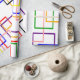 Este papel de embrulho colorido é muito divertido. Está coberto por uma variedade de quadrados abertos. Bom para qualquer ocasião.