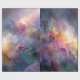 The image presents an abstract composition resembling a field of fantastical flowers. The color palette is dominated by soft pastels, including shades of pink, purple, yellow, and blue, creating a dreamy and ethereal atmosphere. The forms are fluid and organic, suggesting petals or cloud-like shapes. Light appears to emanate from the center, adding depth and dimension to the artwork.