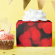 O fundo do abstrato transformou-se em papel de embrulho, uma camada preta com luzes de anzol em vermelho, laranja e amarelo-claro. Uma design divertida para qualquer ocasião de doação.