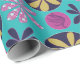 Apresentando nosso embrulho de presente com padrão contemporâneo, enfeitado com abstrato florais e círculos sobredimensionados contra um pano de fundo azul brilhante. Este papel vibrante e chic wraping oferece uma maneira moderna de apresentar seus presentes com talento, perfeito para qualquer ocasião