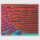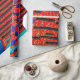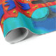 Olhos de peixe em padrões ousados de abstrato vermelho, azul, aqua e preto.