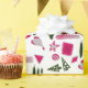 Abstrato de designs de Natal cor-de-rosa e verde em papel de embalagem branco. Um presente perfeito para todos.