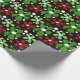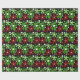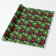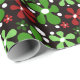 Abstrato, flores vermelhas e verdes em papel de embalagem de Natal.