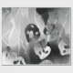 Este design apresenta um design abstrato com paleta a preto e branco, linhas brancas, ovais etc.
