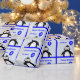 Personalize este papel de embrulho de pinguins fofo adicionando um nome na caixa. As crianças adoram pinguins, e este tem um balão azul brilhante de aniversário de 3 anos. A saudação padrão é "Parabéns", mas você também pode mudar isso. O design com o título garante diretrizes fáceis para cortar o papel até o tamanho.