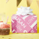 Adicione qualquer nome de comprimento médio a este design de nuvem de palavras divertidas para criar um papel de empacotamento de aniversário personalizado adequado para qualquer idade. Ajuste o tamanho do texto para o ajustado, se necessário. Este exemplo tem texto branco em um fundo bloqueado por cor em tons bonito de rosa. Procure ID274 para ver outros designs de nuvem de palavras com espaço para nomes mais longos e também mais opções de cor para este design.