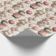 This delightful pattern showcases small mice characters dressed for a birthday celebration, carrying balloons and bunting flags in soft pink and beige hues. Set on a clean white background, it’s perfect for baby girl wrapping paper that’s both whimsical and sweetly nostalgic.