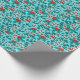 Bonito papel de embrulho com canas doces e cerejas sobre fundo azul. Eles vão adorar o papel de embrulho tanto quanto o presente!