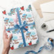 Imagens em aquarela de dois adoráveis veados bebês são a característica no padrão deste papel de embrulho de Feriado giro. Entre as imagens de veados está uma poinsettia aquosa e seu texto personalizado, que diz "Feliz Natal". *O crédito de Design para estas belas imagens é para o ATArtDigital no Etsy.
