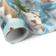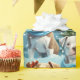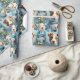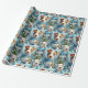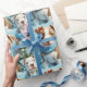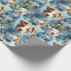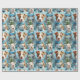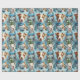Cãezinhos pitbulosos e bonitos sobre fundo azul-claro com flocos de neve e verde, vestindo um lenço azul de inverno... e um arco vermelho, o maior papel para embrulhar seus presentes neste ano, um deve ter para as famílias de pitbulas ou qualquer amante de cachorro - A © WhimsicalArtwork™ original -
