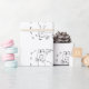 Adotar um desenho humano - bonito preto e branco de gato, arte ingênua, desenho linear branco e texto para amantes de gatos. Cor de fundo personalizada.