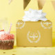 Um advogado criativo com um perfil engraçado de design de justiça em um fundo dourado.