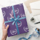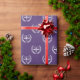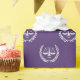 Brincadeira de presente de advogado criativo apresentando escalas felizes de padrão de justiça em um fundo roxo.