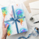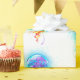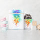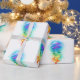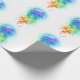 Água-viva grande, iridescente, desenhada artisticamente, brilhante, com longos tentáculos em branco, pintada sobre fundo de aquarela multicolorido. Água-viva arco-íris.