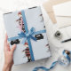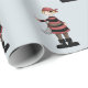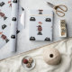 O papel de embrulho de pirata divertido é certamente o seu pequeno pacote de aniversário favorito! Pirata veste camisa vermelha e preta listrada, calças marrons, botas piratas e uma bandana vermelha. Sua faca está do lado dele através do cinto. Entre os padrões dos piratas estão os chapéus piratas com bósforos. O fundo é azul pálido.