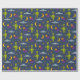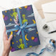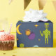 Adicione um toque fora deste mundo a qualquer presente com este papel de embrulho padronizado. Ilustrações de pequenos aliens espaciais verdes, discos voadores, luas, estrelas e planetas são colocadas sobre um fundo azul marinho.