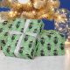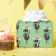 Whimsical moderna mão ilustrada em pé com chapéus e cachecóis de santa em fundo verde