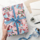 Papel De Presente Aldeia de Natal de Reindeer Rosa